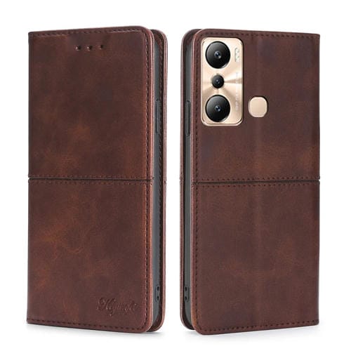 Funda de Cuero para Infinix Hot 20I con Tapa Horizontal Magnética y Textura de Vaca (Marrón Oscuro)