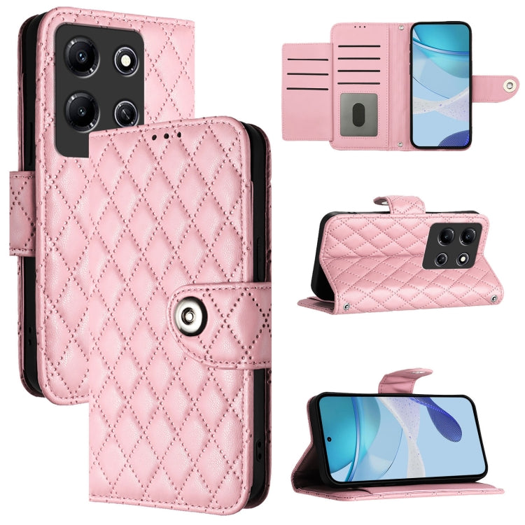 Funda para Infinix Smart 8 Plus y Smart 8 Pro de Cuero con Tapa, Textura Rómbica y Cordón (Rosa)