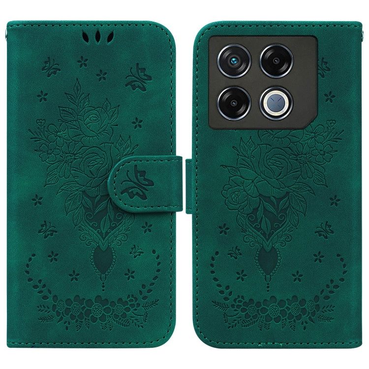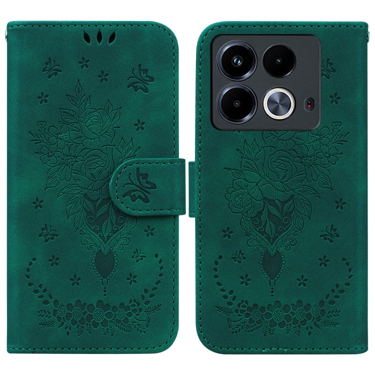 Funda de Cuero con Relieve Mariposa y Rosa para Infinix Note 40 Pro 4G/5G (Verde)