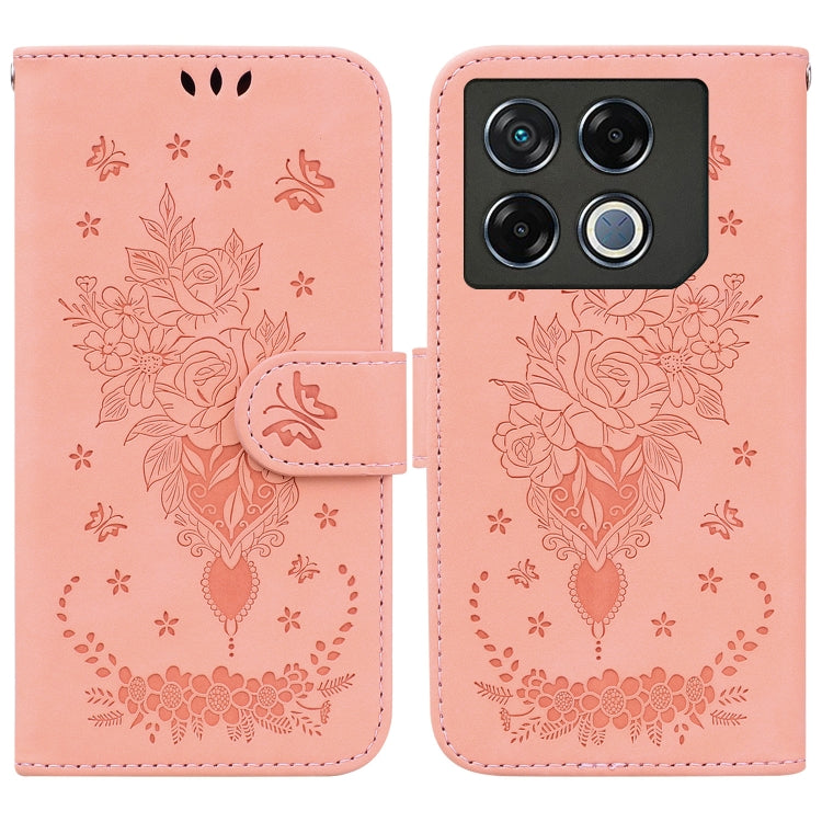 Funda de Cuero para Infinix Note 40 Pro 4G / 5G con Relieve de Mariposa y Rosa (Rosa)