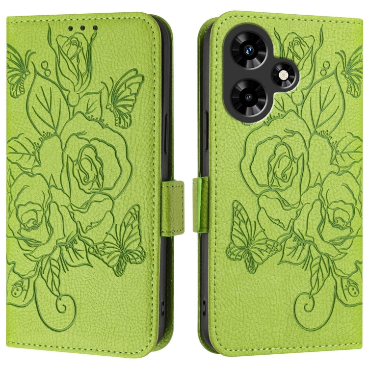 Funda de Cuero Antirrobo RFID para Infinix Hot 30I con Relieve (Verde)