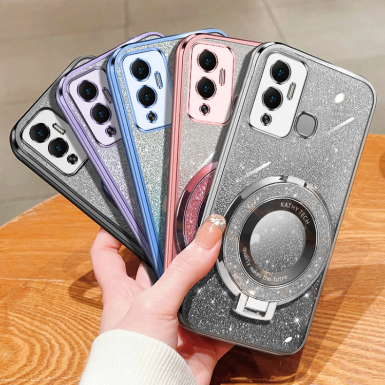 Funda de TPU con Soporte Redondo y Purpurina Degradada Chapada para Infinix Note 30 5G (Rosa)