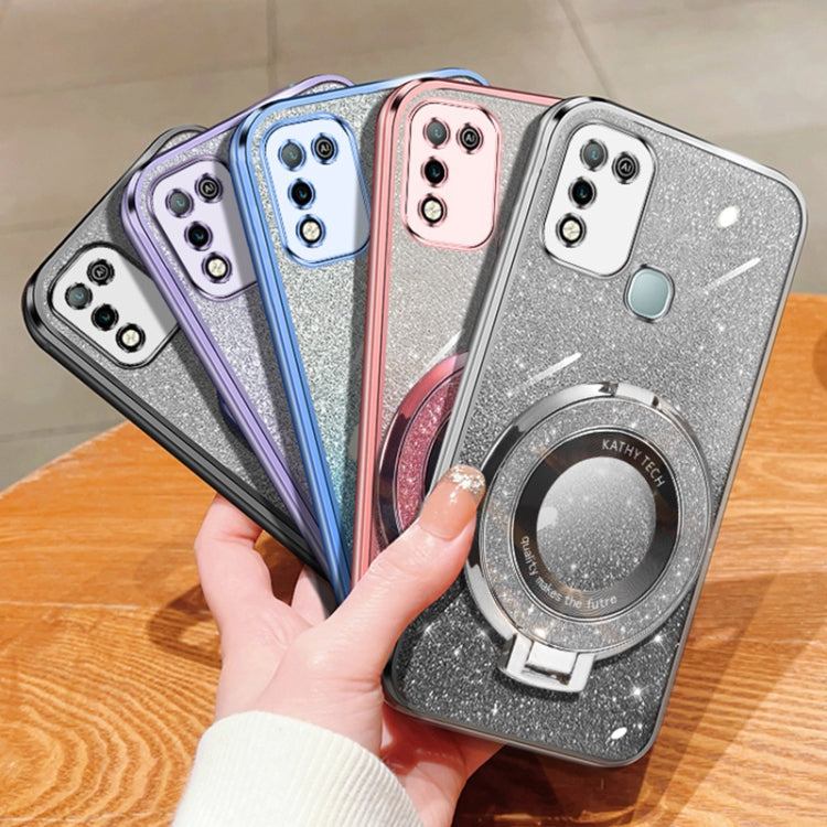 Funda de TPU con Soporte Redondo y Purpurina Degradada para Infinix Hot 12 Play (Morado)
