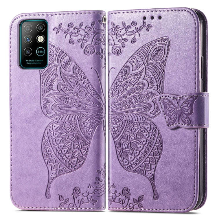 Funda de Cuero Butterfly Love Flowers con Soporte Ranuras y Cordón para Infinix Nota 8 (Luz Púrpura)