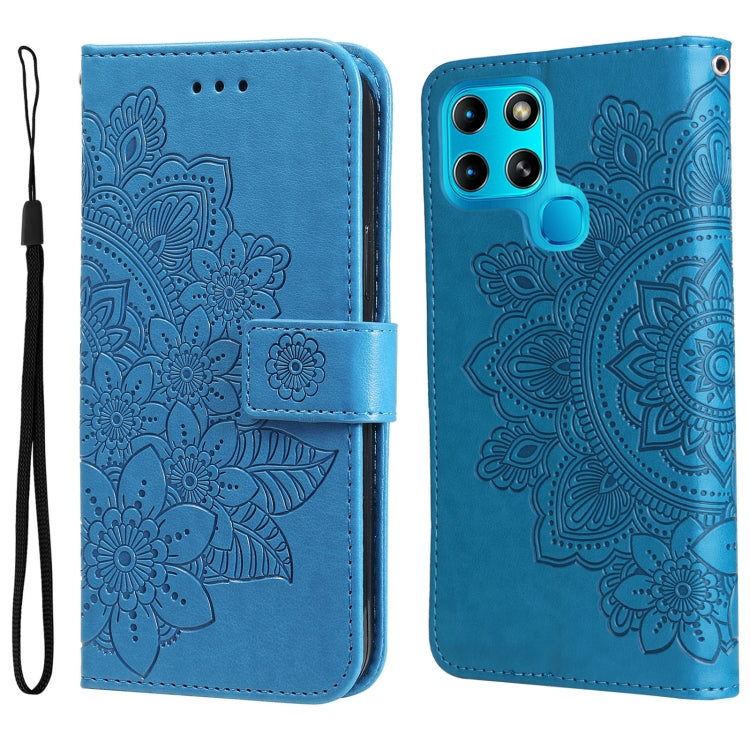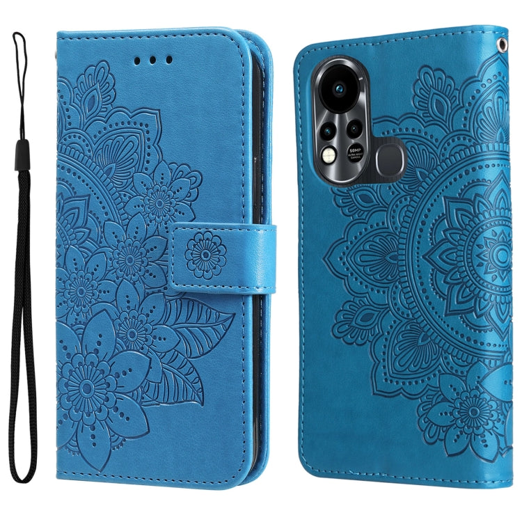 Funda Flip Leather para Infinix Hot 11S NFC con Flores de 7 Pétalas (Azul)