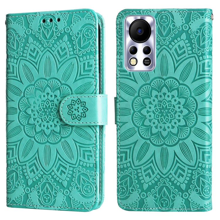Estuche para Teléfono Infinix Hot 11S Nfc Cuero Estampado Girasol en Relieve (Verde)