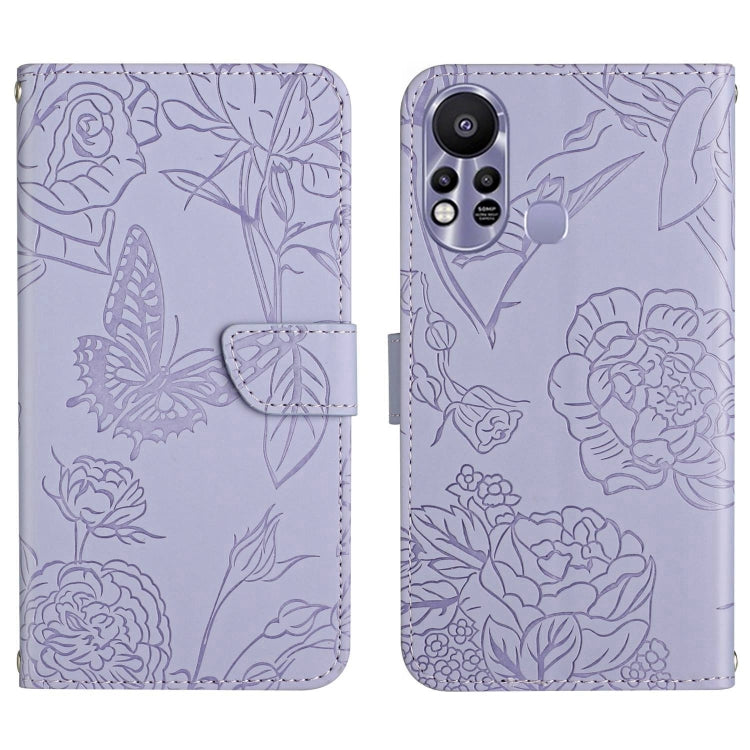 Funda de Cuero con Tapa En Relieve Skin Feel Butterfly para Infinix Hot 11S Ht03 (Púrpura)