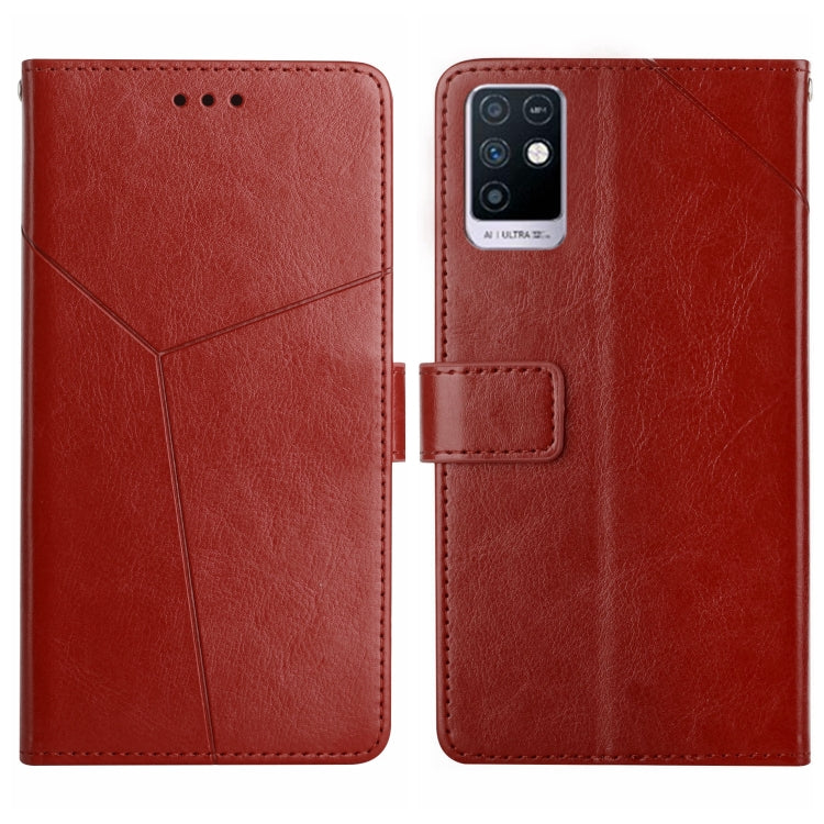 Funda de Cuero para Infinix Note 10 HT01 con Tapa y Patrón en Forma de Y (Marrón)