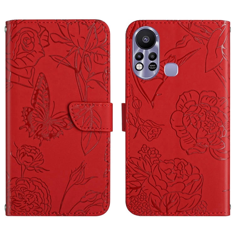 Funda de Cuero con Tapa En Relieve para Infinix Hot 12 Ht03 Skin Feel Butterfly (Rojo)