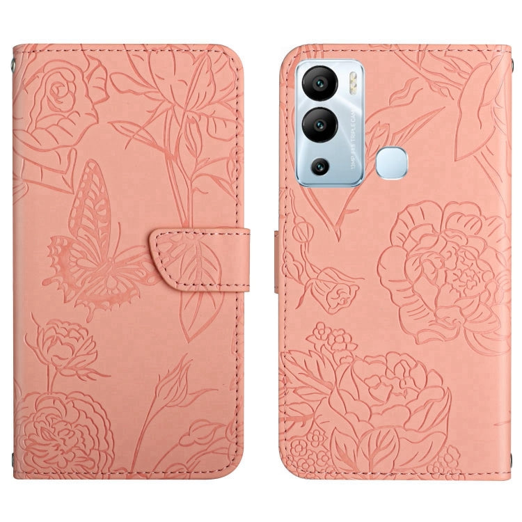 Funda de Cuero con Tapa en Relieve para Infinix Hot 10 Ht03 Skin Feel Butterfly (Rosa)
