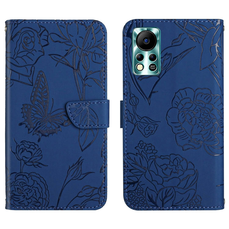 Funda de Cuero para Infinix Hot 11S Ht03 con Tapa en Relieve y Diseño Butterfly (Azul)