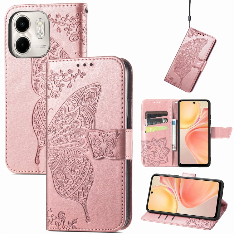 Funda de Cuero con Relieve de Mariposa y Flor para Infinix Smart 9 (Oro Rosa)