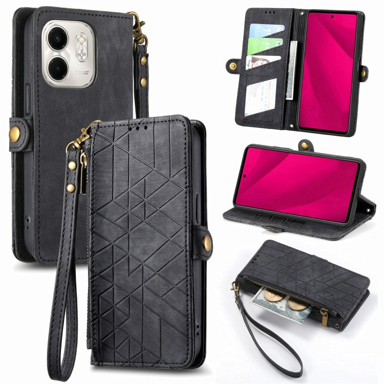 Funda de Cuero con Cierre de Hebilla y Diseño Triangular para Infinix Hot 50 5G (Negro)