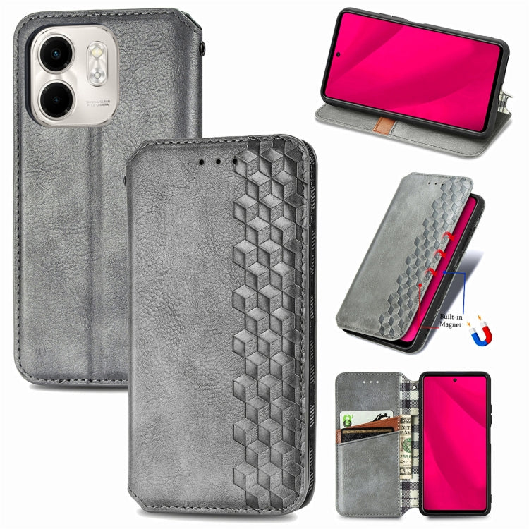 Funda de Cuero Magnética con Rejilla Cúbica Prensada para Infinix Smart 9 (Gris)