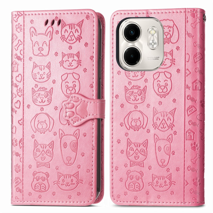 Funda de Piel con Relieve de Gato y Perro para Infinix Smart 9 (Rosa)