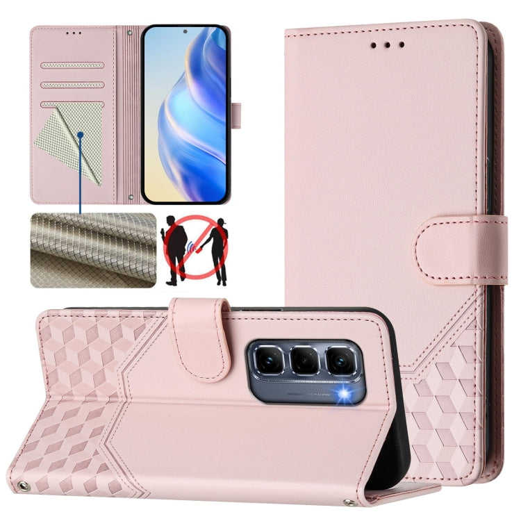 Funda de Cuero RFID con Relieve en Panal para Infinix Hot 50 Pro+ 4G (Rosa)