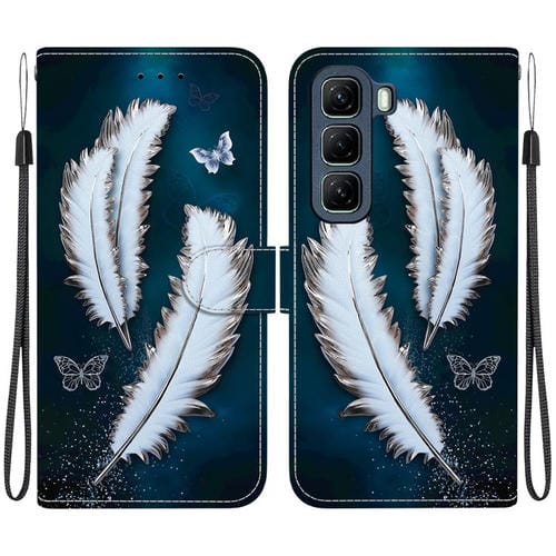 Funda de Cuero con Dibujo y Textura de Cristal para Infinix Hot 50 5G (Plumas de Mariposa Blancas)