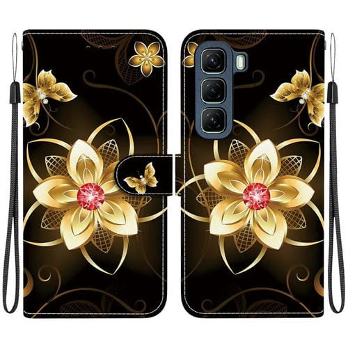 Funda de Cuero con Dibujo y Textura de Cristal para Infinix Note 40 Pro 4G/5G/Pro+ (Flor Dorada)