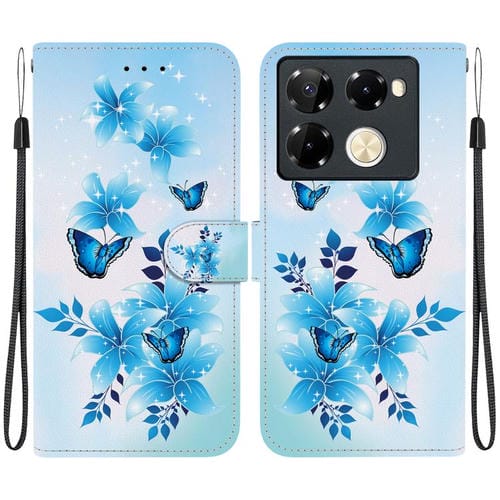 Funda de Cuero con Dibujo y Textura de Cristal para Infinix Note 40 Pro 4G/5G/Pro+ (Mariposas Azules)