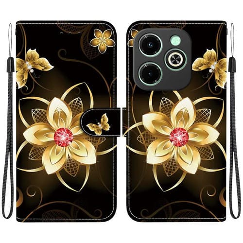Funda de Cuero para Infinix Smart 8/HD/Hot 40I con Dibujo Colorido y Textura de Cristal (Flor Dorada)