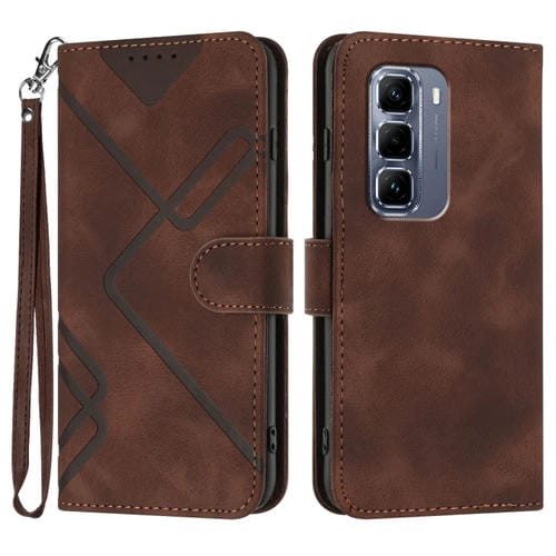 Funda de Cuero para Teléfono Infinix Hot 50 Pro+ 4G con Diseño de Líneas y Tacto Suave (Café)