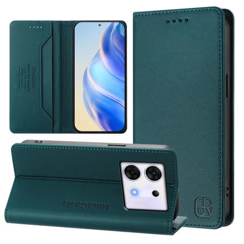 Funda de Cuero con Doble Pliegue y Succión Magnética Rfid para Infinix Zero 40 4G/5G Rc01 (Verde)