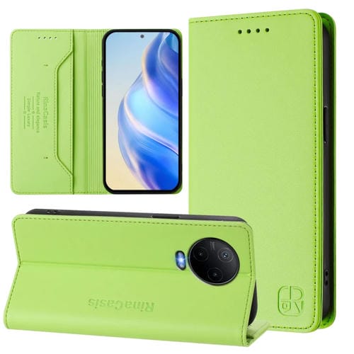 Funda de Cuero con Doble Pliegue y Succión Magnética Rfid para Infinix Hot 50 5G Rc01 (Verde Hierba)