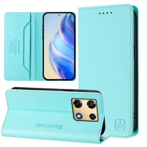 Funda de Cuero Rfid para Infinix Hot 50 5G Rc01 con Doble Pliegue y Succión Magnética (Verde Menta)