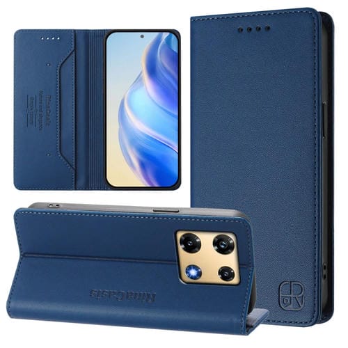 Funda de Cuero Infinix Note 40 Pro 4G/5G Rc01 con Doble Pliegue y Succión Magnética (Azul Oscuro)