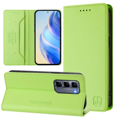 Funda de Cuero Infinix Hot 50 Pro+ 4G Rc01 con Doble Pliegue y Succión Magnética Rfid (Verde Hierba)