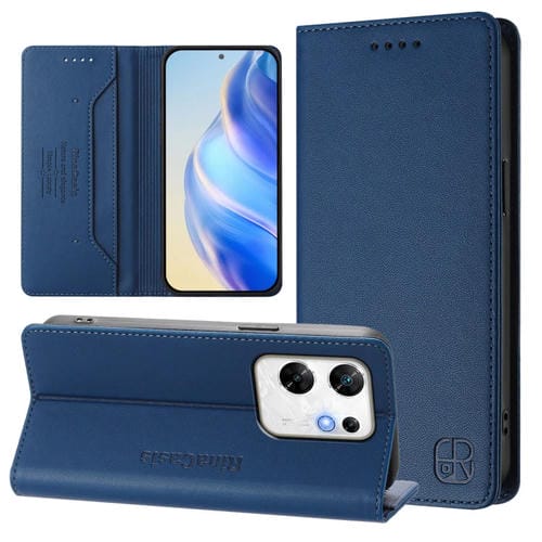 Funda de Cuero con Doble Pliegue y Succión Magnética RFID para Infinix Zero 30 4G Rc01 (Azul Oscuro)