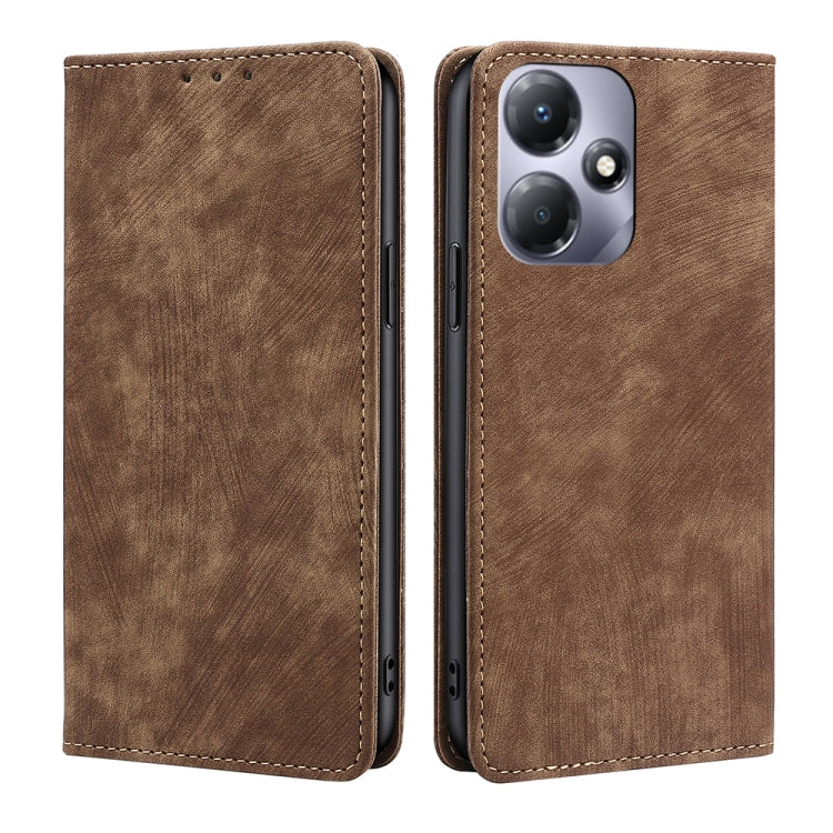 Funda para Infinix Hot 30 Play 4G Skin Feel de Cuero con Hebilla Magnética (Marrón)