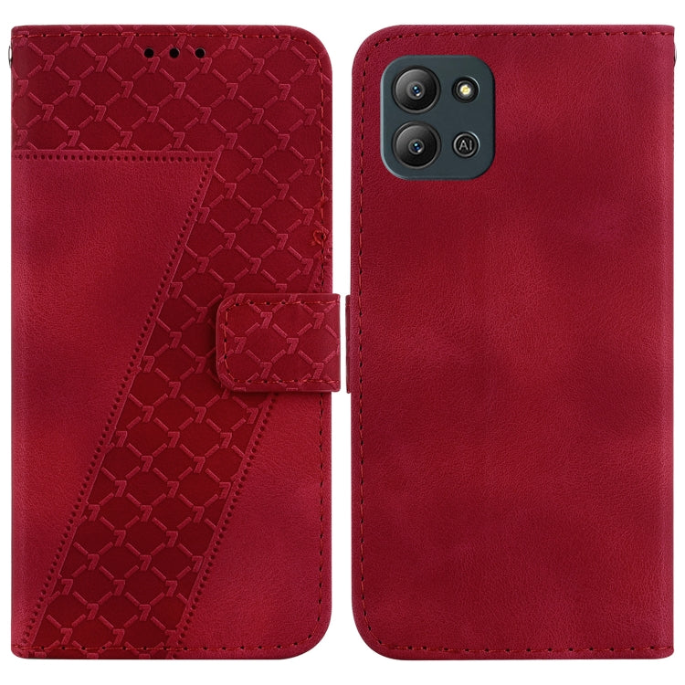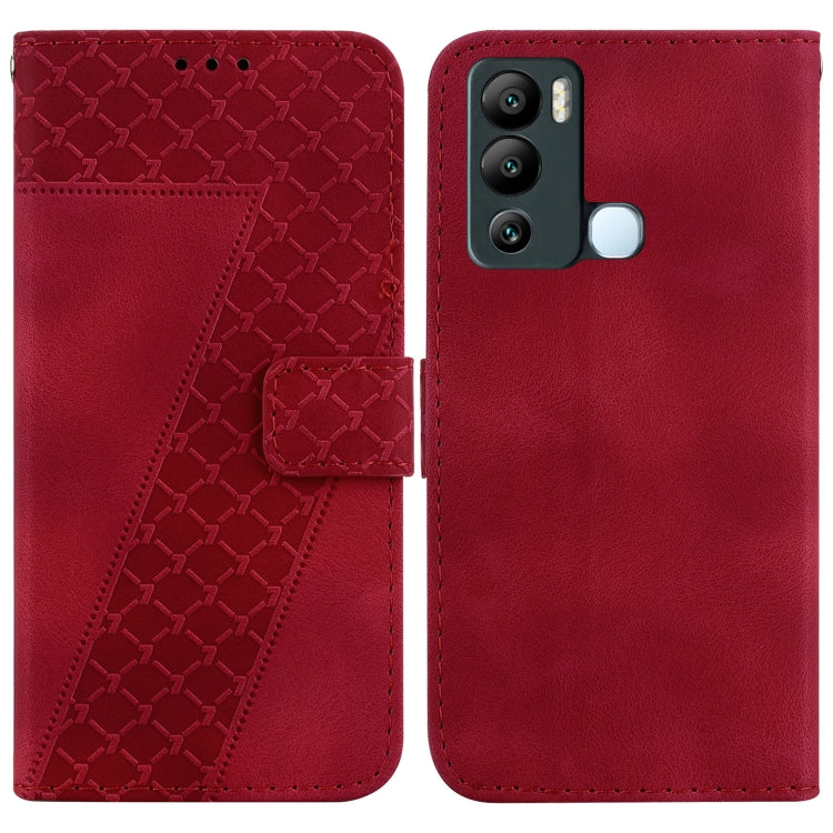 Funda de Cuero En Relieve en Forma de 7 para Infinix Hot 11 2022 (Rojo)