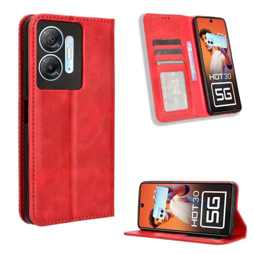Funda para Teléfono Infinix Hot 30 5G X6832 Cuero Textura Retro con Hebilla Magnética (Rojo)