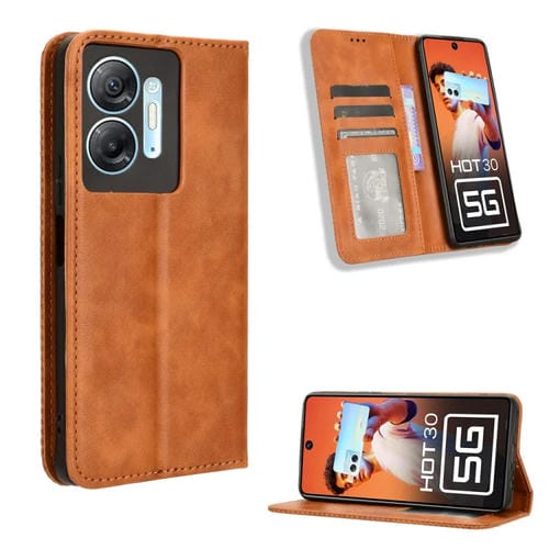 Funda para Infinix Hot 30 5G X6832 de Cuero con Textura Retro y Hebilla Magnética (Marrón)