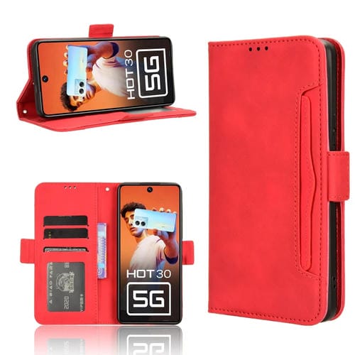 Funda de Cuero para Infinix Hot 30 5G X6832 con Ranuras para Tarjetas y Textura de Piel (Rojo)