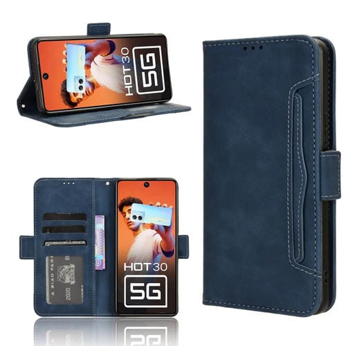 Funda de Cuero para Infinix Hot 30 5G X6832 con Textura de Pantorrilla y Ranuras para Tarjetas (Azul)