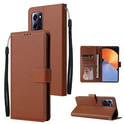 Funda para Infinix Note 30 de Cuero Multifuncional con 3 Ranuras para Tarjetas (Marrón)