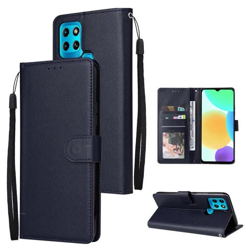 Funda para Infinix Smart 6 de Cuero Multifuncional con 3 Ranuras para Tarjetas (Azul Oscuro)