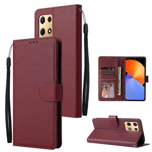 Funda de Cuero Multifuncional para Infinix Note 30 Pro con 3 Ranuras para Tarjetas (Rojo Vino)