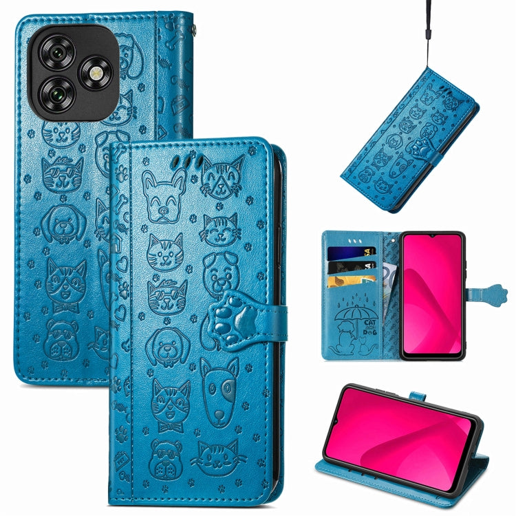 Funda de Piel con Relieve de Gato y Perro para Teléfono Oukitel C53 (Azul)