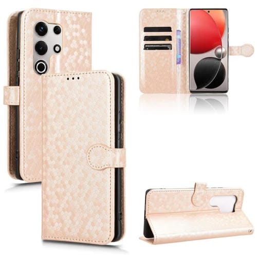 Funda de Cuero Itel S25 Ultra con Textura de Puntos en Panal (Dorada)