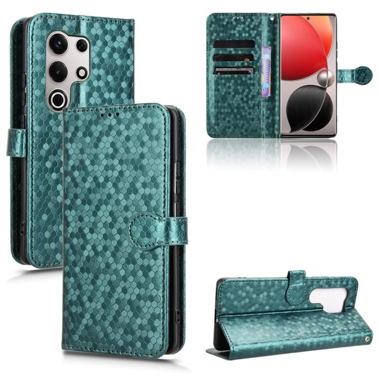 Funda de Cuero para Itel S25 Ultra con Textura de Puntos en Forma de Panal (Verde)