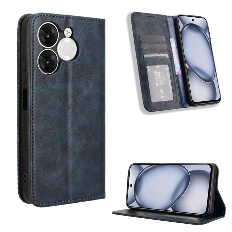 Funda de Cuero Itel A80 4G Textura Retro con Hebilla Magnética (Azul)