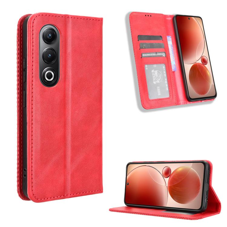 Funda de Cuero Oukitel C57S con Textura Retro y Hebilla Magnética (Roja)