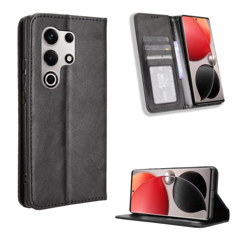 Funda Cuero Itel S25 Ultra 4G Textura Retro Hebilla Magnética (Negro)