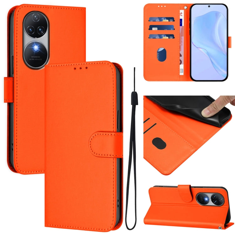 Funda de Piel Sintética con Cordón para Teléfono Oukitel C33 (Naranja)