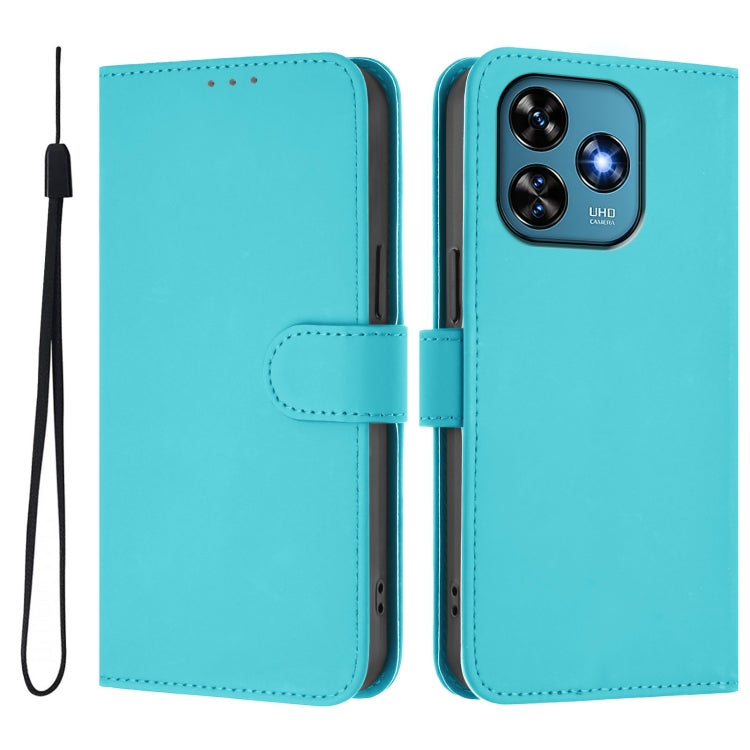 Funda de Piel con Cordón para Teléfono Oukitel C51 Textura de Piel (Azul Lago)