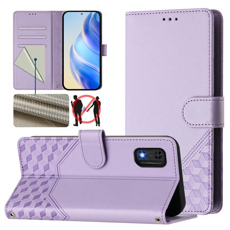 Funda de Cuero Rfid con Relieve en Panal para Oukitel C38 (Morado Claro)