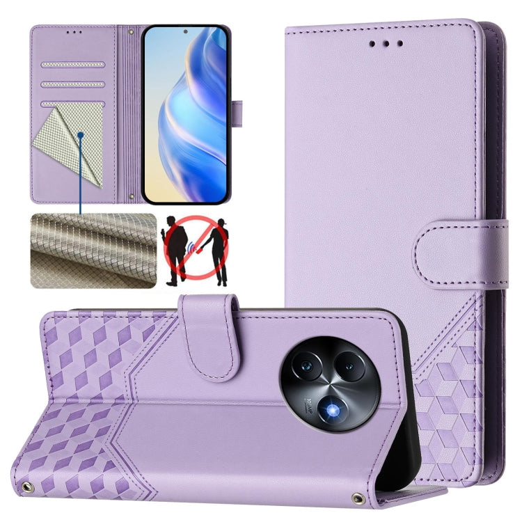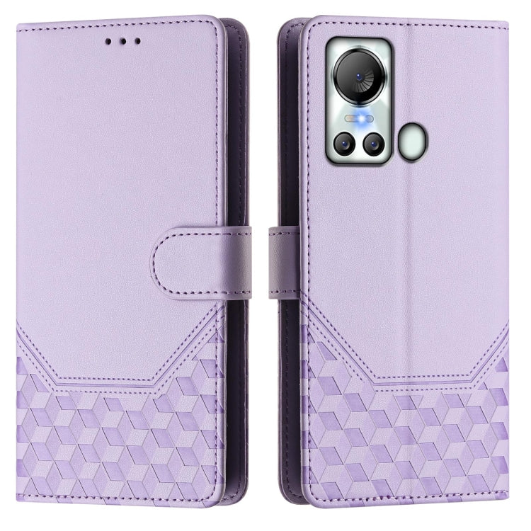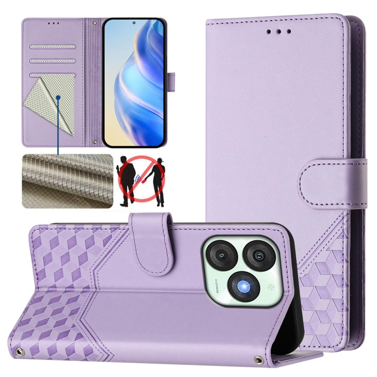 Funda de Cuero Rfid con Relieve en Panal para Teléfono Itel P55 5G (Morado Claro)